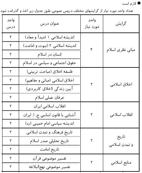 در زیر سرفصل های مصوب این رشته در مقطع کارشناسی قرار داده شده است: